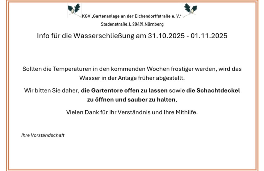 Samstag, 22.02.2025 in den Räumen des Stadtverbands Nürnberg der Kleingärtner e.V., Oedenberger Str. 112, 90491 Nürnberg um 10:00 Uhr mit Neuwahlen der Vorstandschaft wurde erfolgreich durchgeführt.