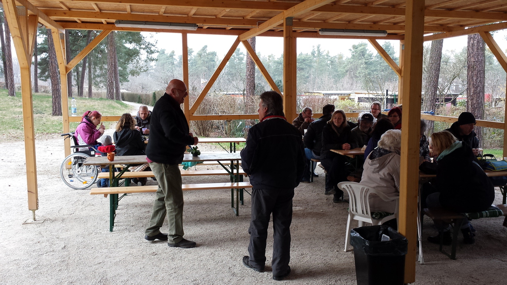 Wie sonst könnte man in die neue Saison starten, wenn nicht mit frisch gegrillten Bratwürsten? Neben diesen gab es wärmenden Kaffee, der die doch noch recht eisigen Temperaturen kurze Zeit erträglicher machte.