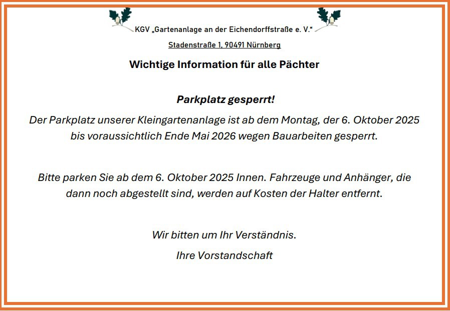 Deshalb hat sich die Vorstandschaft des Stadtverbandes Nürnberg der Kleingärtner e.V.